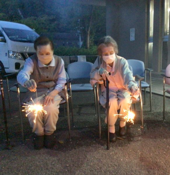 とても盛り上がっており、利用者様から「凄い綺麗だった。」「久しぶりに花火をして