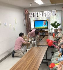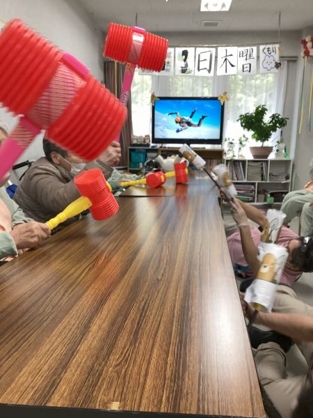 とても盛り上がっており、利用者様から「凄く楽しかった。」「今度は、スタッフを叩きたい。」といったいろんな声を